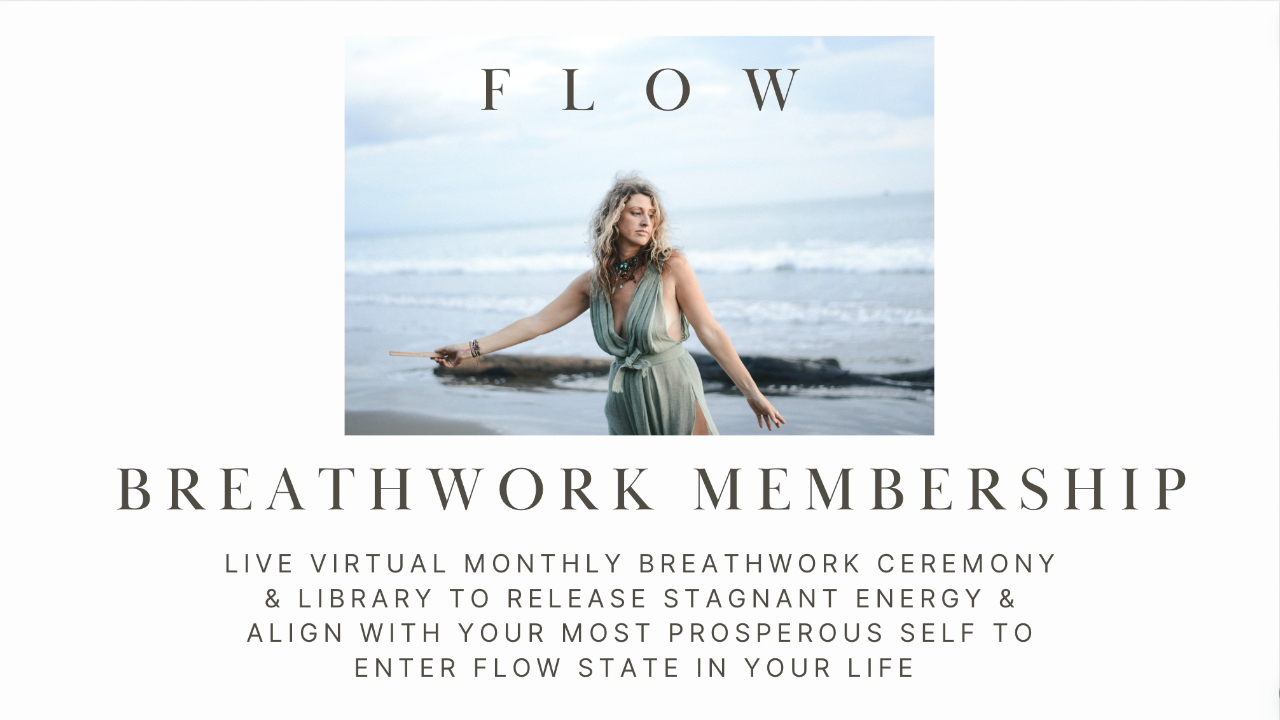 Welcome to F L O W-- A monthly membership, healing library & community of support to heal and transform together. In these live 2 hour ceremonies to transition to the month ahead, we will set intentions and use breathwork to remove stagnant energy and completely realign yourself to a clear path ahead--and create safety in the body to hold your manifestations.